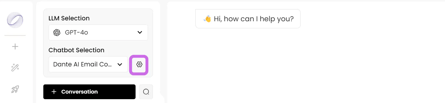 1. Go to your ‘Chatbot Selection' settings on the dashboard.