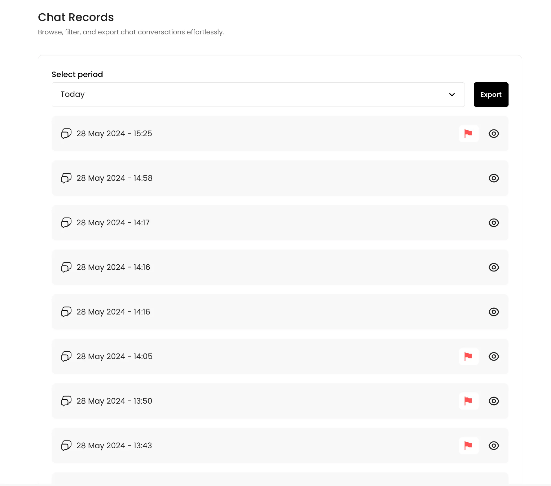 1. Go to the ‘Chat Records' tab in your dashboard.